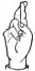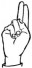 На ћирилици написано ХРАНИМИР РАЈКОВ састоји се из 14 слова [?]. Исписано ћириличном једноручном азбуком за глувонеме: